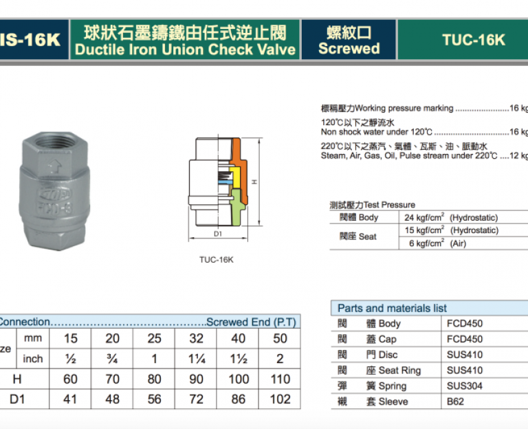 延性鑄鐵緩衝式逆止閥 JIS-16K